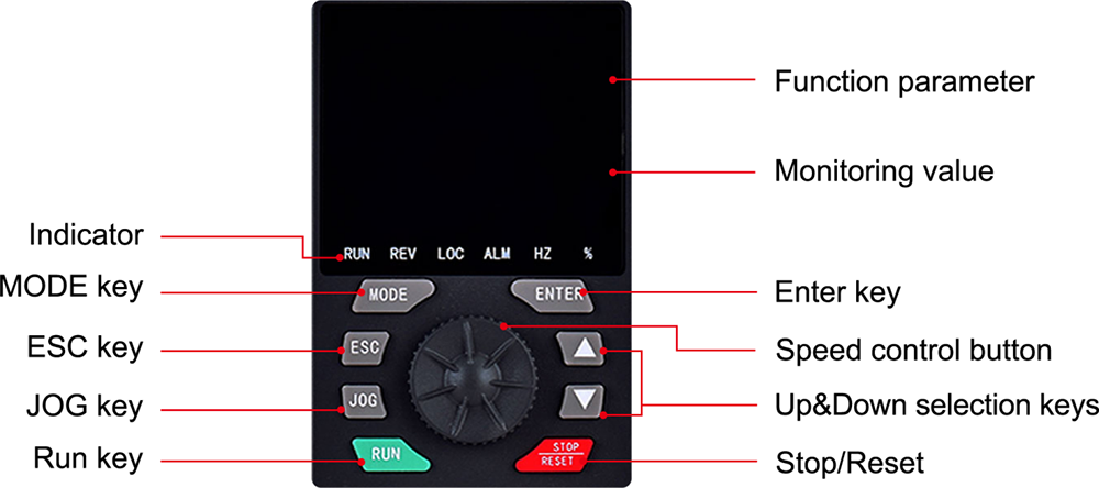 | Simulan at Stop Control Signal | Pinagsamang Operation Panel | Tumakbo, itigil ang mga pindutan |